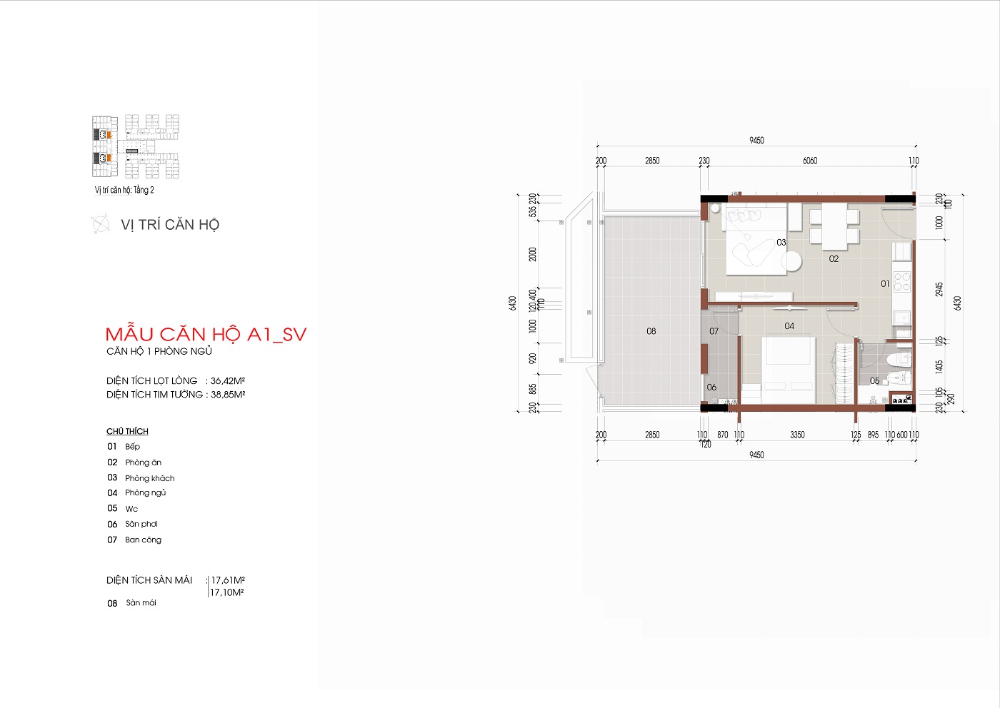 Căn hộ 1 Phòng Ngủ (36,42m2)